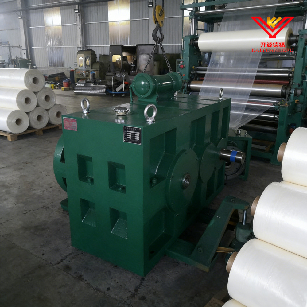 Наш редуктор с твердыми зубьями для серии машин для выдувания пленки представляет собой прецизионный компонент, предназначенный для обеспечения надежной передачи мощности на линиях по производству пластиковой пленки.